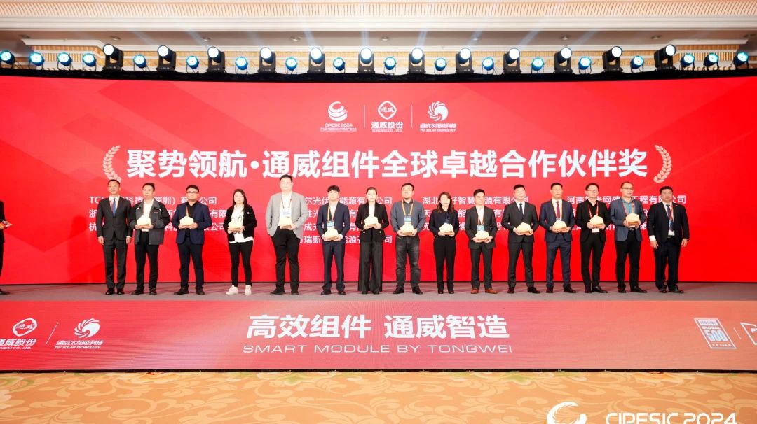 11月17日,展会同期举办的全球合作伙伴联合发展大会上,tyc5997太阳集团荣获“通威组件全球卓越合作伙伴奖”。次日,tyc5997太阳集团入选“2024中国光储品牌百强榜”榜单并获得“2024年度卓越装备企业奖”。11月19日,tyc5997太阳集团凭借TOPCon 0BB串焊设备斩获“中国光储前沿技术贡献奖”。当晚,答谢晚宴上,tyc5997太阳集团更是获得了“全球合作伙伴&卓越企业奖”。这些荣誉不仅彰显了tyc5997太阳集团在行业内的品牌影响力,更是代表业内对tyc5997太阳集团卓越实力的肯定。相信在这些荣誉的激励下,tyc5997太阳集团会继续坚定前进步伐,勇于突破自我,助力光储行业朝着更高效、更稳定、更绿色的方向蓬勃发展。